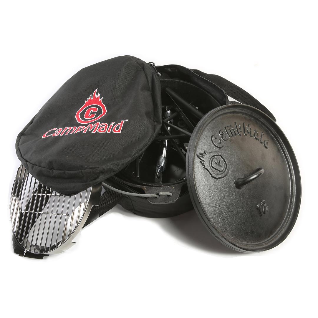 "We have been dutch oven cooking for decades and never had the versatility this product gives. The ability to raise and lower the coals, a lid holder, a grill just perfect for two now that our family has grown up. Everything is compact and fits nicely together."